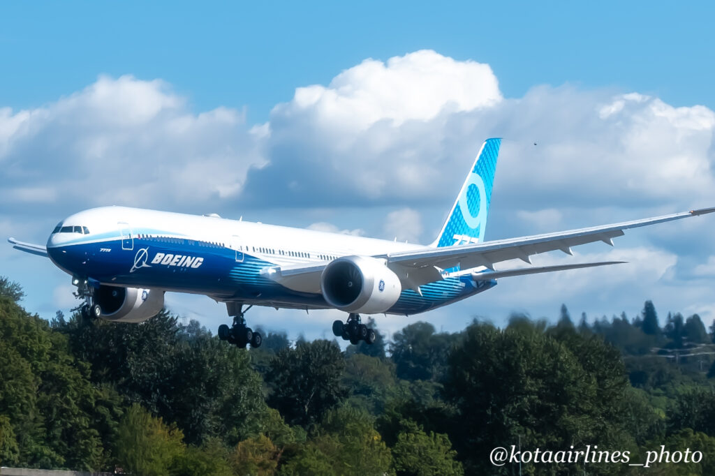 以前シアトルのボーイングフィールドを訪れた際、幸運にもテスト飛行中の777Xを見ることができました。